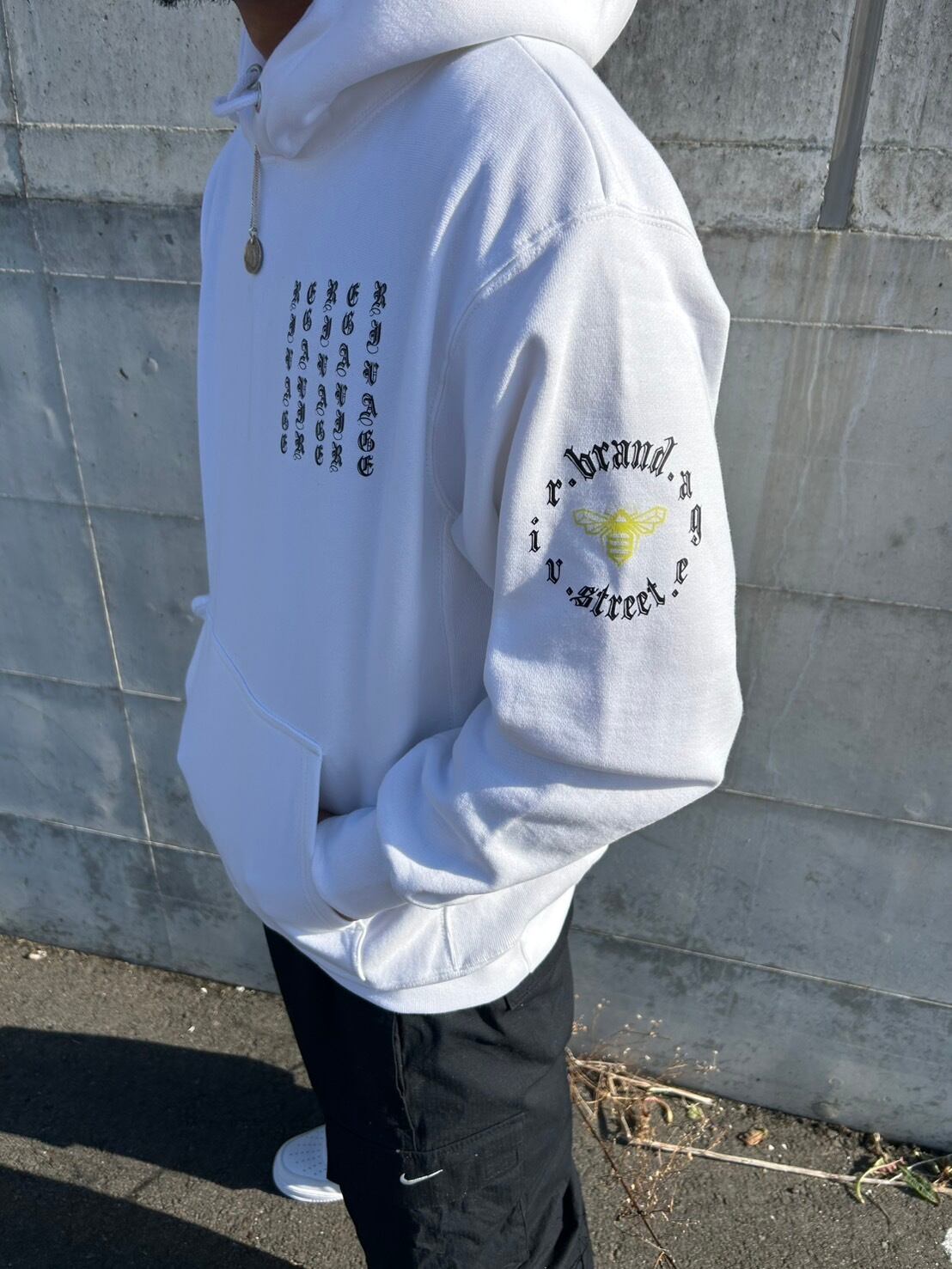 左胸にoriginalデザインロゴ、腕には、【蜂】をイメージしたワンポイントカラー!シンプルでstreet感を出したデザインのfoodie「パーカー」!
